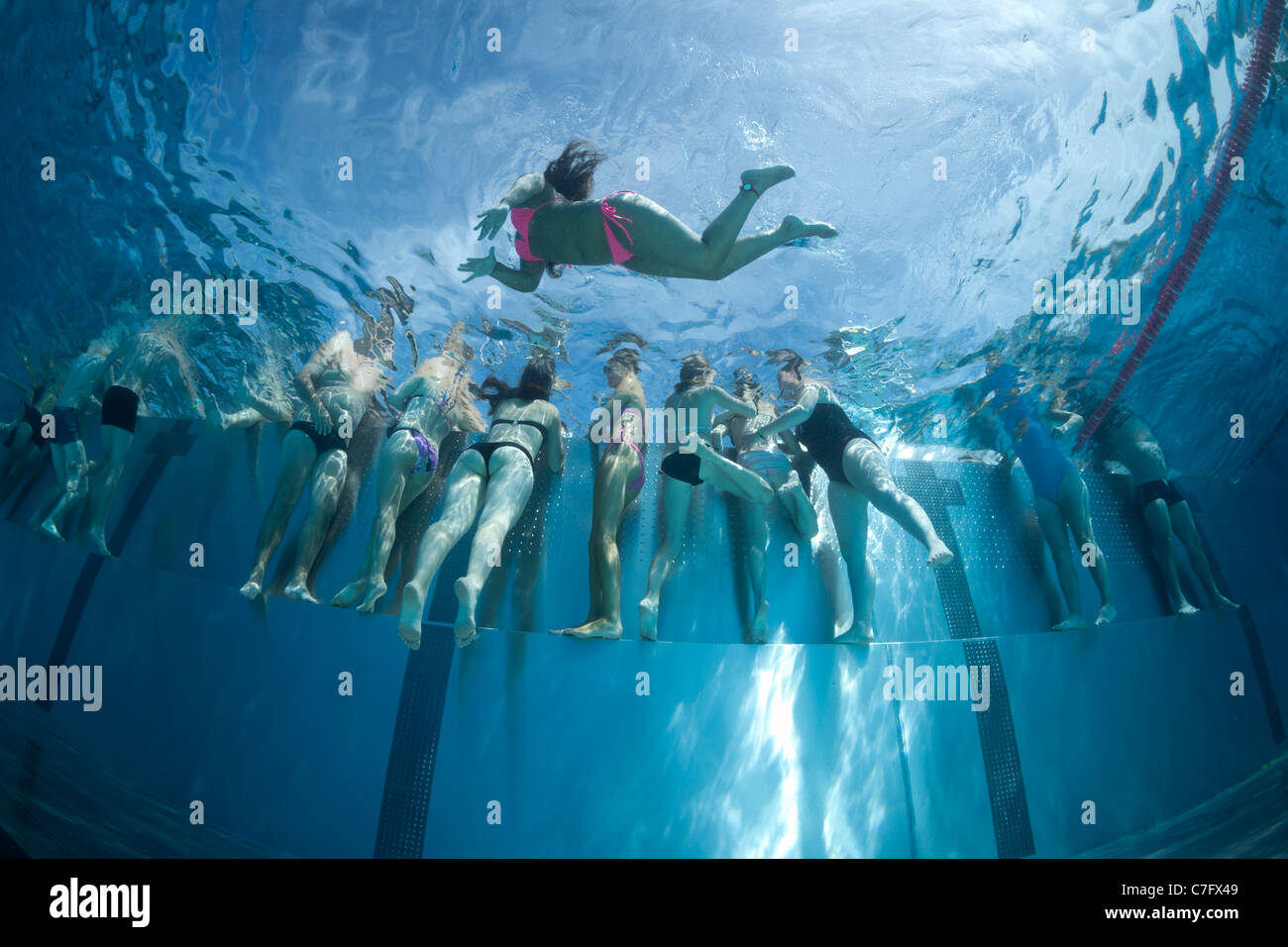 Swimmers Practising The Apnoea In A Swimming Pool Swimmers Stock